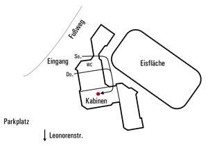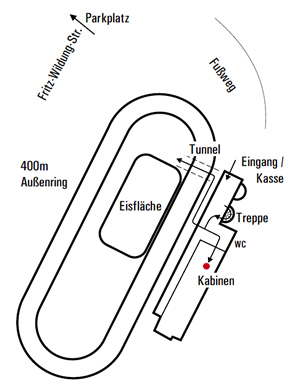 Internet: Das Eisstadion liegt verkehrsgünstig und zentral neben der Stadtautobahn, Es bietet eine 30 x 60 m Eisfläche, auf der unsere Kurse stattfinden und darüber hinaus einen 400 m Ring, der dem Publikum zu bestimmten Zeiten zur Verfügung steht. Während unserer Trainingszeit ist der Ring für den öffentlichen Lauf geöffnet.